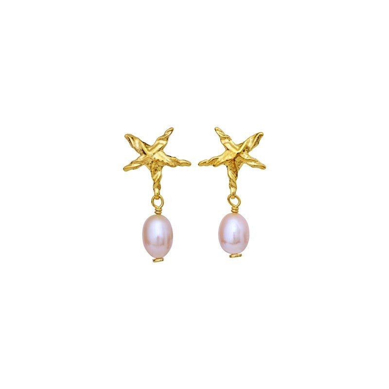 Tag havets magi med dig i hverdagen – Sandie øreringene fra Maanesten indfanger havets fantastiske eventyr og omsætter dem til et feminint og drømmende design. Inspireret af blide bølger og skatte fra dybet forenes ægte rosa ferskvandsperler med gyldne søstjerner i et legende udtryk.