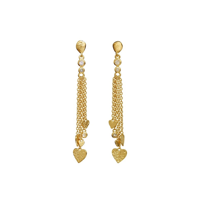 Lolly øreringe i 18 karat forgyldt sølv med regnbue månesten og hjerter fra Maanesten