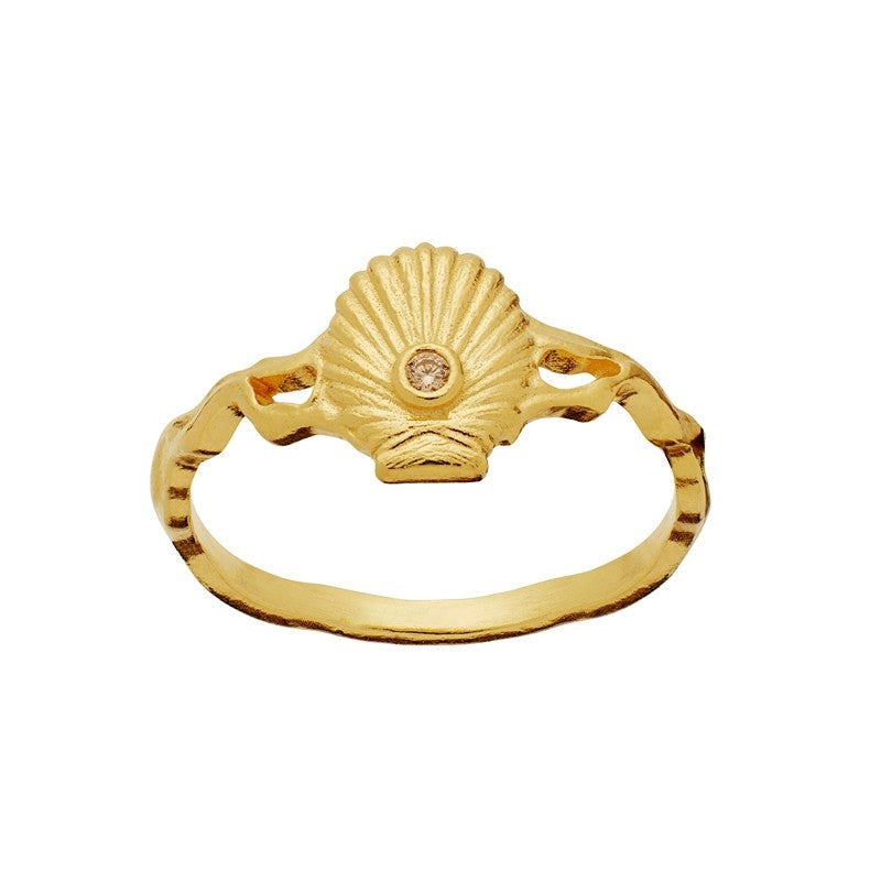 Myra ring i forgyldt sølv med champagne zirkonia fra Maanesten