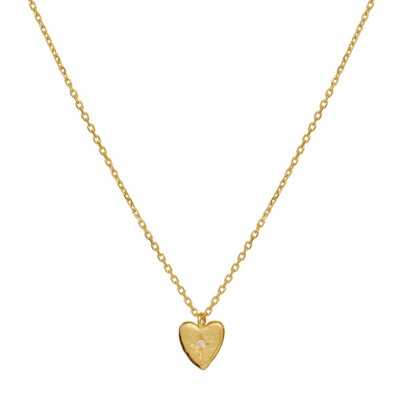Ira halskæde fra Maanesten i 18 karat forgyldt sølv med hjerte og månesten 40–44 cm