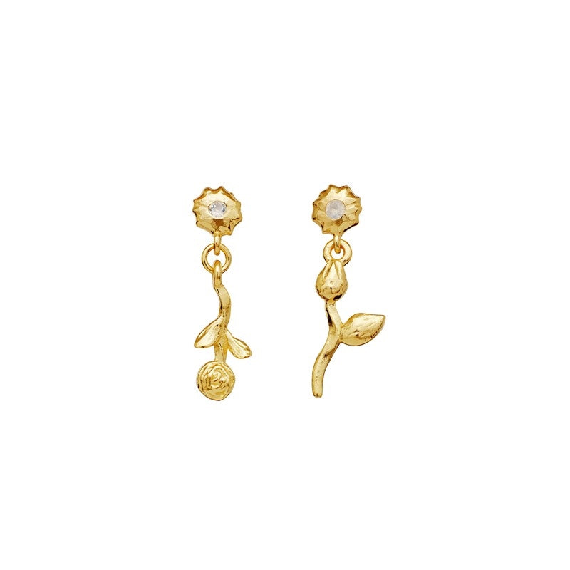 Amaria forgyldte sølvøreringe med månesten og rosevedhæng fra Maanesten