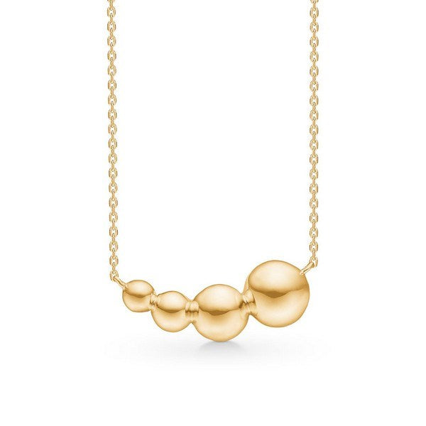 Designet er karakteriseret ved et smukt vedhæng med fire polerede bobler, alle udført i eksklusiv 14 karat guld. Kæden kan justeres i længden fra 42–45–50 cm, så den passer perfekt til enhver påklædning og anledning. Den del af Mads Z’s Gold Label-serie, der er kendt for sit tidløse udtryk og overlegne kvalitet, gør halskæden ideel – uanset om det er til hverdag eller fest. Det elegante design egner sig særligt til dig, der sætter pris på diskret luksus og rene linjer. Brug den alene som et iøjnefaldende statement, eller kombiner med de matchende øreringe for et fuldendt look.