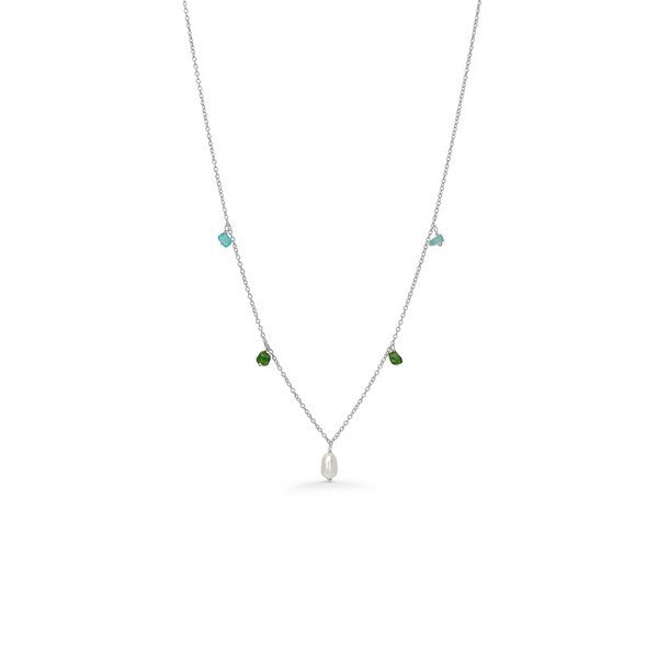 Twilight halskæde i sølv med barok perle og farvede sten fra Mads Z