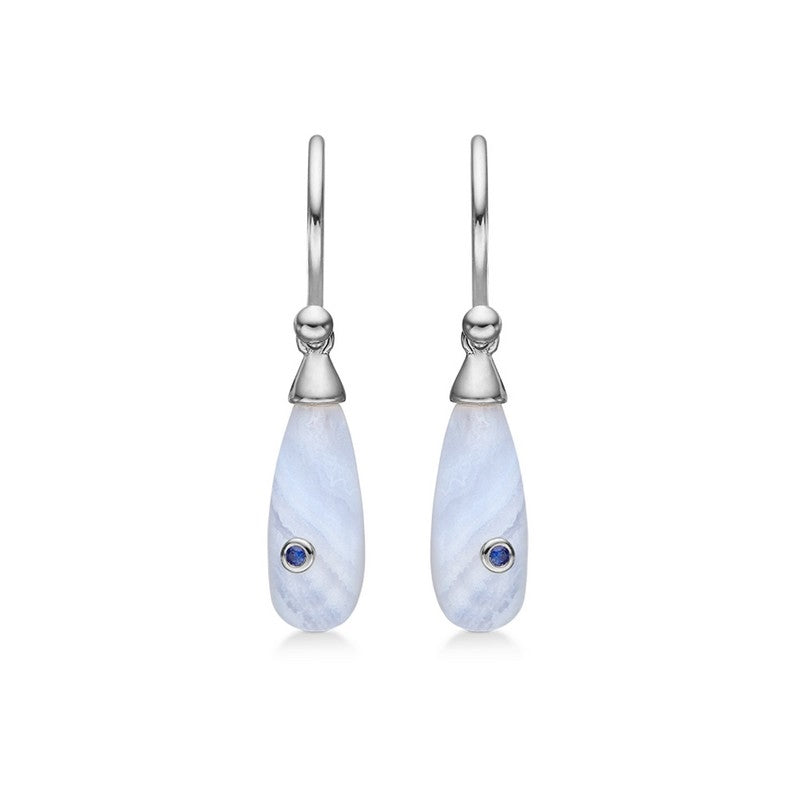 Precious Love øreringe fra Mads Z i sterlingsølv med blå lace agat og safir