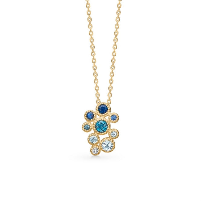 Luxury vedhæng i 14 kt guld med blå sten fra Mads Z inkl. kæde 42–45 cm