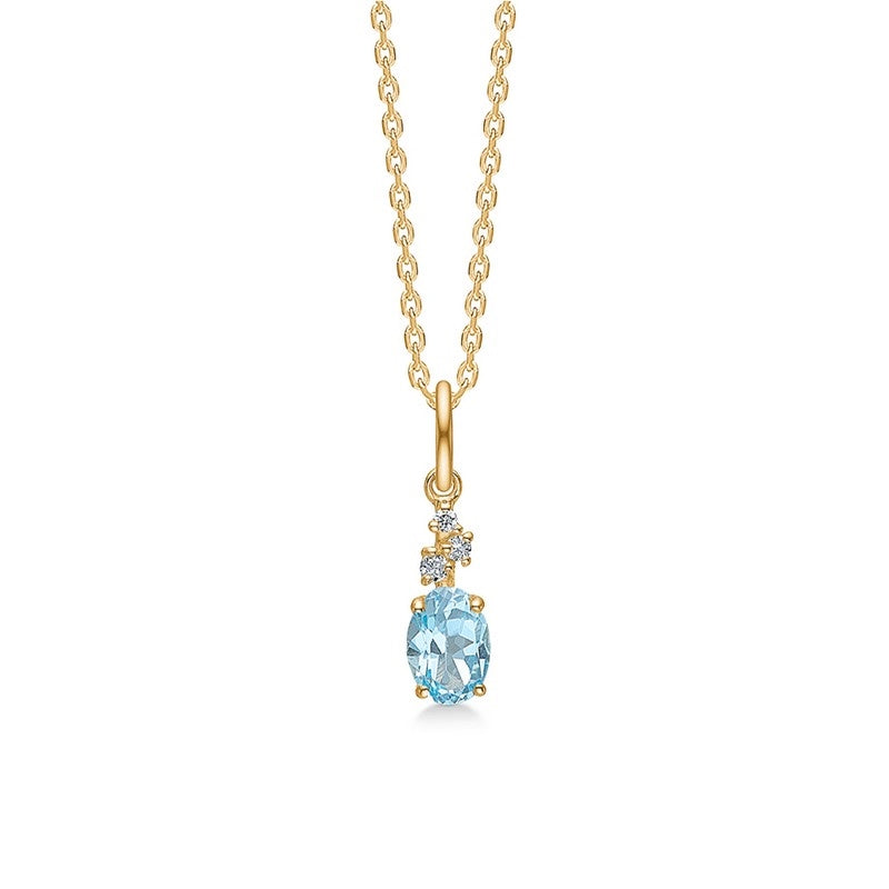 Leonora vedhæng fra Mads Z i 14 kt guld med blå topas og 0,03 ct diamanter inkl. kæde