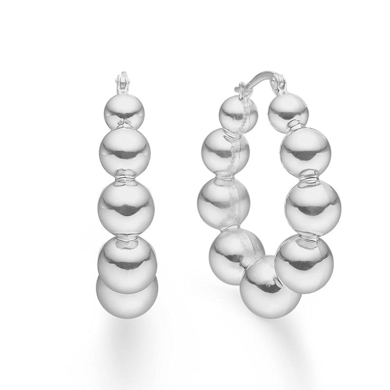 Disse smukke hoops øreringe er udført i sterlingsølv og kendetegnes af de markante, kugleformede elementer hele vejen rundt. Med deres højde på 38 mm får du et markant, men samtidigt sofistikeret look, der klæder både hverdagsjeans og festkjoler. Silver Label-kollektionen fra Mads Z hylder det klare sølv og tidløs minimalisme – et designvalg til kvinder, der værdsætter det enkle og elegante. Øreringenes blanke overflade og harmoniske form gør dem ideelle til dig, der ønsker at udtrykke dig stilfuldt og selvsikkert, uanset hvor du er på vej hen.