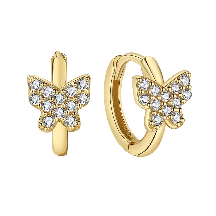 Butterfly creoler i 18 karat forgyldt sølv med zirkonia fra MerlePerle, 10,5 mm