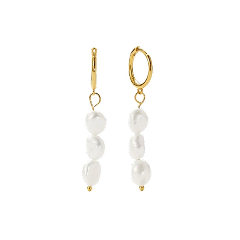 Agnete øreringe i 18 karat forgyldt sølv med barokke ferskvandsperler fra MerlePerle