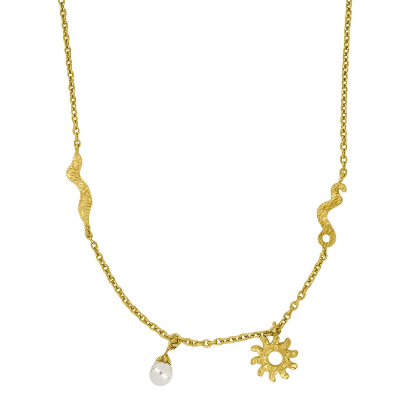 SPACE52 halskæde i forgyldt sølv med solvedhæng og ferskvandsperle fra Nordahl Andersen