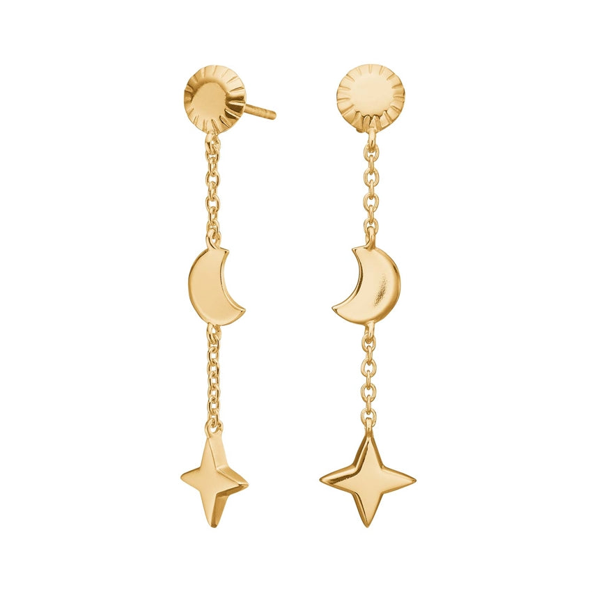 Giv dit look et poetisk løft med disse fortryllende hængeøreringe fra Nordahl Jewellerys UNIVERSE52-serie. Hver bevægelse fanger lyset og fortæller sin egen lille historie gennem sol, måne og stjerne – skabt til dig, der elsker smykker med personlighed og symbolik.