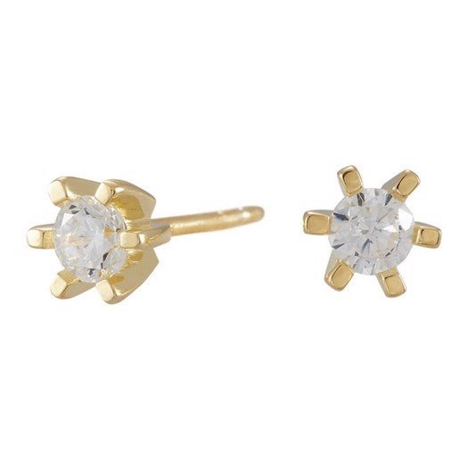 Øreringene er udført i forgyldt sølv og prydes af funklende zirkonia sten, der er indfattet med 6 grabber for et klassisk og sikkert design. Zirkonia stenene tilfører et eksklusivt og strålende udtryk, som både komplementerer det elegante guldskær og skaber en smuk detalje i dit øresmykke. Designet er diskret og alligevel iøjnefaldende, og gør dem oplagte både til daglig brug og som et raffineret valg til festlige lejligheder. Om du ønsker at fremhæve et afslappet outfit eller give dit festlook et strejf af luksus, vil disse øreringe være et sikkert hit – uanset alder og stil. Designet fra Nordahl Andersen sikrer, at kvalitet og æstetik altid følges ad.