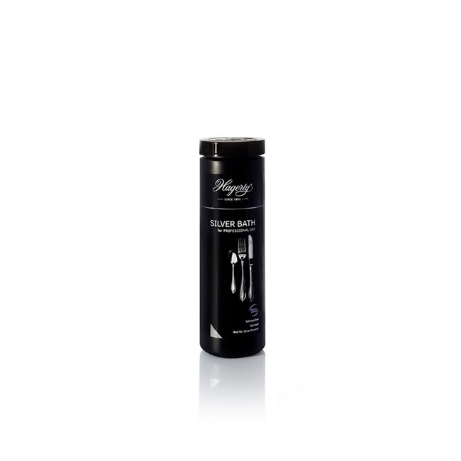 Hagerty Silver Bath fra Nordahl Andersen er udviklet specielt til at fjerne sorte belægninger, oxidering og snavs fra både ægte sølv og pletsølv. Beholderen gør rensningen nem og bekvem: dyp blot bestikket helt ned i badet i 5–10 sekunder, skyl grundigt med vand og tør efter med en blød klud for at fremhæve sølvets klassiske glans. Er sølvet ekstra oxideret, kan du opnå et endnu smukkere resultat med Hagerty Silver Duster. Denne hurtigvirkende og alsidige sølvrens egner sig særligt godt til bestik og mindre sølvgenstande, der kræver jævnlig opfriskning, så du altid kan dække et elegant bord eller bevare dine kære arvestykker flotte og funklende.