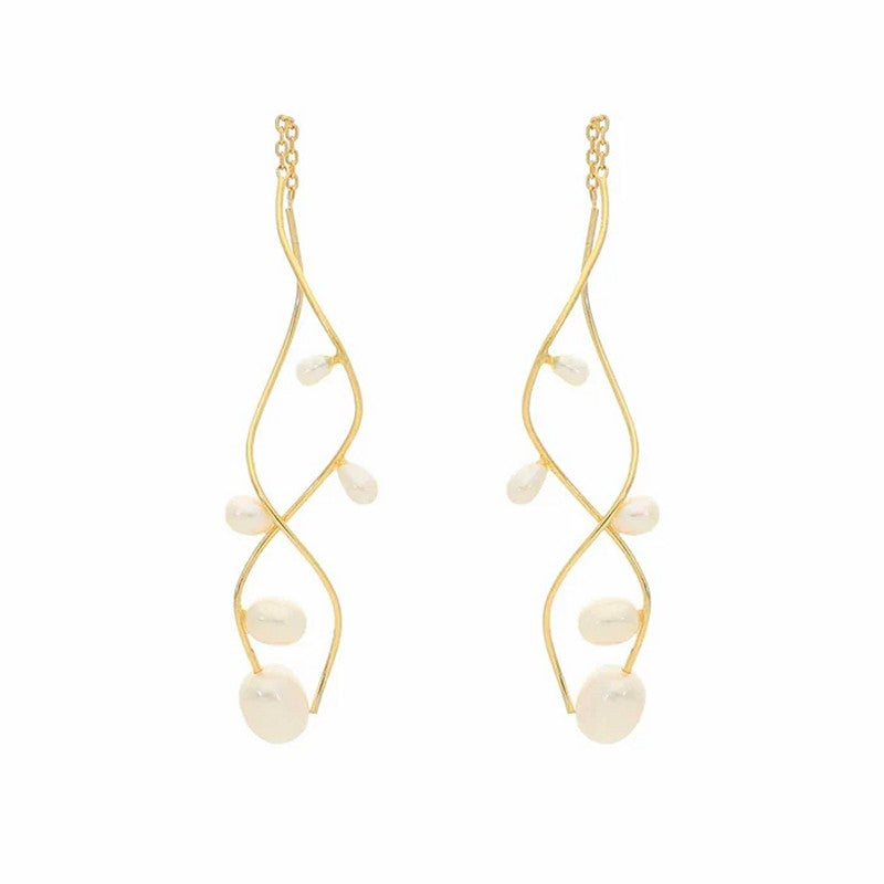 Angelina perleøreringe fra Nuni Copenhagen i 24 karat forgyldt sølv med ferskvandsperler, 6 cm