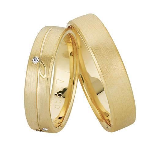 Unikke Nuran vielsesringe i 8 eller 14 karat guld med 0,04 ct diamanter og bladdetalje