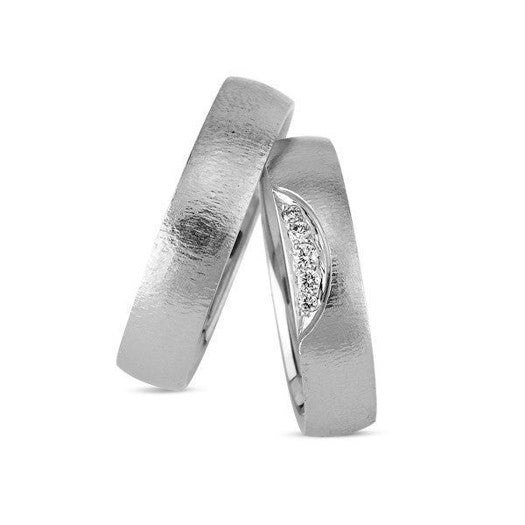 Tidløse Nuran vielsesringe i 14 karat hvidguld med 0,07 ct diamanter