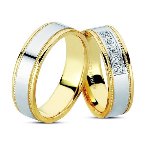 Luksuriøse Nuran vielsesringe i 14 karat guld og hvidguld med 5 x 0,03 ct diamanter