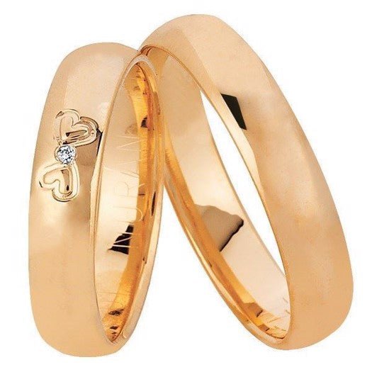 Unikke Nuran vielsesringe i 14 kt guld med to hjerter og 0,01 ct diamant