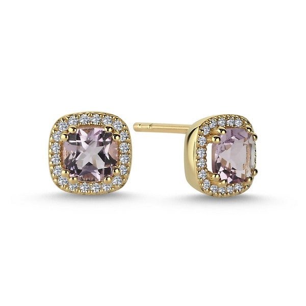 Nuran Grace øreringe i 14 kt guld med pink cushion ametyst og diamanter