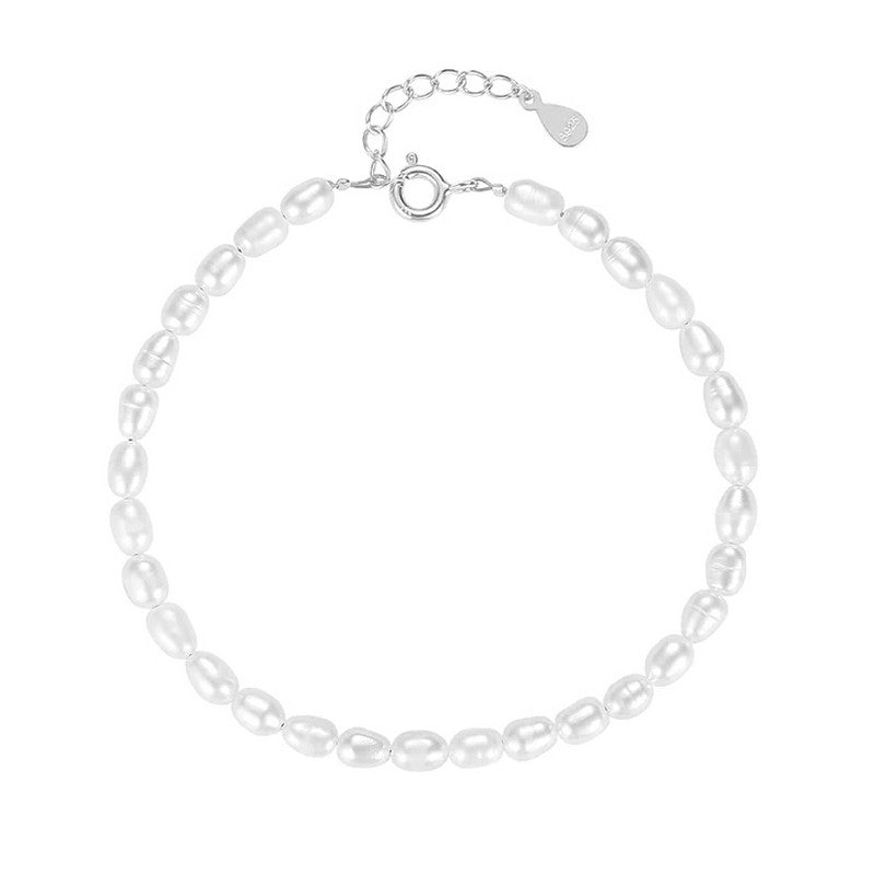 Barok perlearmbånd i sølv med ovale ferskvandsperler fra MerlePerle 17+3 cm