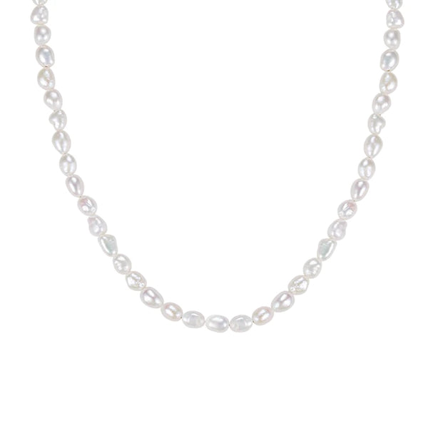 Halskæden findes i en variant og passer smukt i længden omkring din hals. Perlerne er placeret hele vejen rundt, undtagen på det lille forlængerstykke, hvilket giver et elegant og gennemtænkt udtryk. Bemærk, at hver perlehalskæde er unik, da ferskvandsperlerne varierer naturligt i udseende.