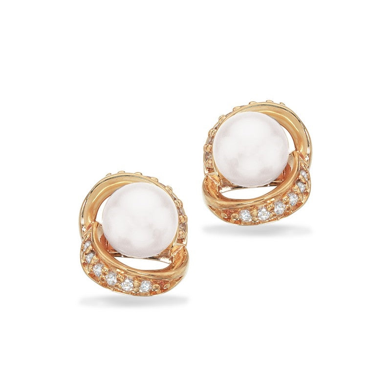 Scrouples ørestikker i 8 kt guld med perler og zirkonia, 10 mm