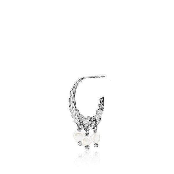 Creolen er udført i genbrugs sterlingsølv og prydet med elegante perler, hvilket skaber et moderne og lidt upoleret look. Det flade design giver et smukt spil i lyset, mens størrelsen gør den både diskret og iøjnefaldende på én gang. Signe Kragh har sammen med Sistie designet denne serie for at hylde de små skævheder, vi alle har, hvilket giver øreringen masser af karakter og personlighed. Den passer perfekt til dig, som går efter stilfulde, men alligevel atypiske smykker, og du kan nemt bruge creolen alene eller kombinere den med andre ørestikker for et personligt udtryk.
