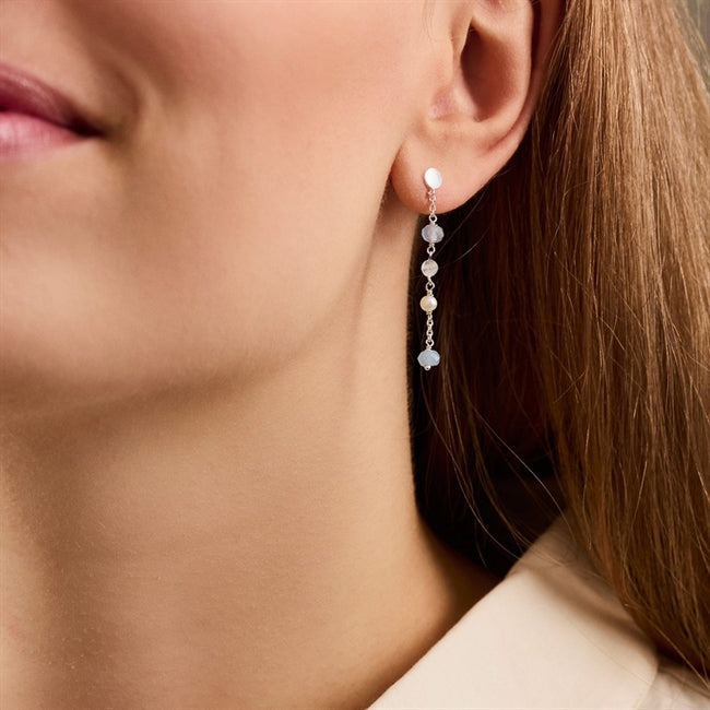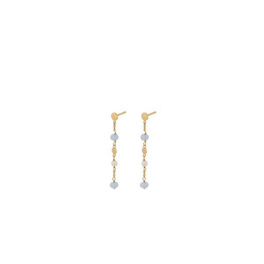 Afterglow Sea øreringe i forgyldt sølv med blå topas og ferskvandsperler fra Pernille Corydon