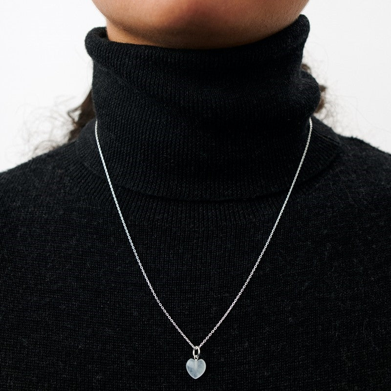 Vedhænget er formet som et hjerte og udført i smukt 18 karat forgyldt sølv – baseret på 100% genanvendt sølv – som rammer den fascinerende blå kvarts ind. Den blå kvartsten har en unik mælkehvid dybde og farveskift, som minder om havets beroligende bølger. Ocean Love Pendant udstråler feminin charme og kan bæres alene på en kæde for et rent og tidløst udtryk, eller matches med andre vedhæng for at understrege din personlige stil. Det er det perfekte valg, uanset om du foretrækker underspillede detaljer eller ønsker at skabe blikfang. Smykket passer til både hverdag og festlige lejligheder, og du vil opleve, hvordan de naturlige variationer i stenen gør hvert eneste vedhæng unikt.