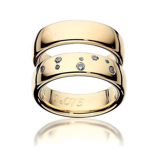 Eksklusive Scrouples vielsesringe i 14 eller 8 karat guld med løvens stjernebillede og diamanter