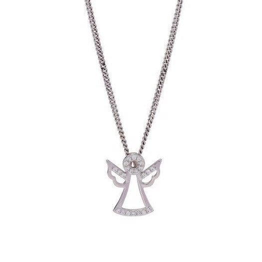 Der tilbydes denne halskæde i den klassiske variant: sølv med englevedhæng og funklende zirkoner. Ønsker du et feminint og alsidigt smykke, er dette en oplagt mulighed.