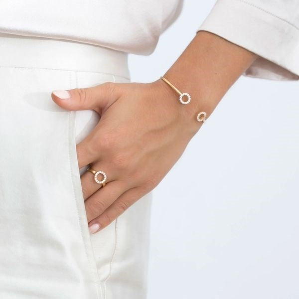 Sif Jakobs Jewellery forener det klassiske med det moderne i Biella Piccolo ringen. Den fine cirkelform på 11 mm er prydet med klare, glimtende hvide zirkoner, der fanger lyset og tilføjer et subtilt, eksklusivt touch. Udført i 18 karat forgyldt 925 sterlingsølv får ringen en varm, gylden glød, der elegant fremhæver både hverdagens og festens outfits. Biella Piccolo ringen er designet til at matche enhver stil, og den kan med lethed bæres alene for et enkelt udtryk eller sammen med andre smykker fra Biella-kollektionen for et personligt statement. Ringen symboliserer evighed og sammenhold – oplagt som gave til en, du holder af, eller som kær forkælelse til dig selv.