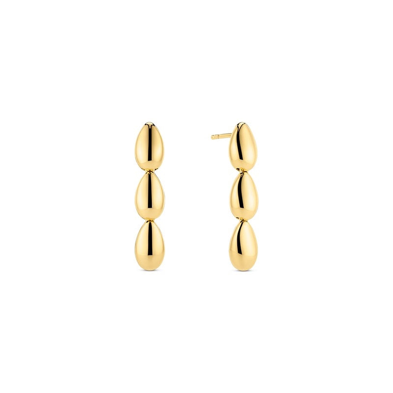 Disse forgyldte sølvøreringe måler 32 mm i længden og er udsmykket med tre skulpturelle dråber, der giver et let og sofistikeret udtryk. Sif Jakobs har formået at skabe en kollektion, der både favner det enkle og det eksklusive, så du kan bære øreringene til både hverdagens møder og festlige aftener. Det gyldne skær tilfører varme og understreger smykkets klassiske, tidløse look. Perfekte til dig, der elsker elegante smykker med moderne linjer—smykkerne fremhæver både din naturlige skønhed og stilbevidste valg.