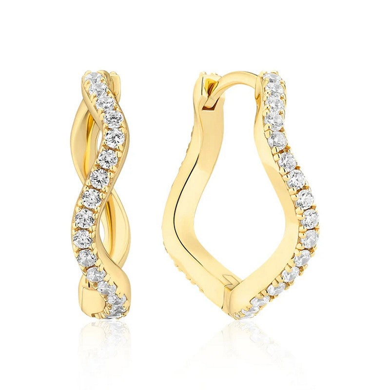 Ellera Waves Grande hoops i forgyldt sølv med hvide zirkonia fra Sif Jakobs