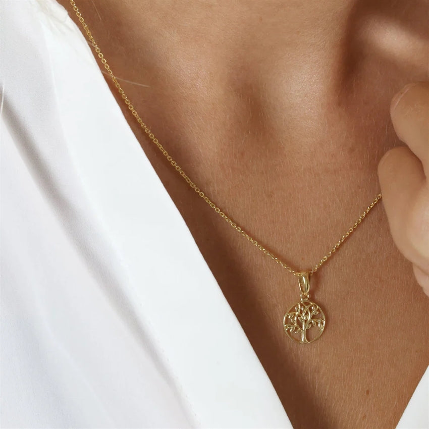 Aagaard Livets Træ vedhæng i 8 kt guld med forgyldt kæde 45 cm