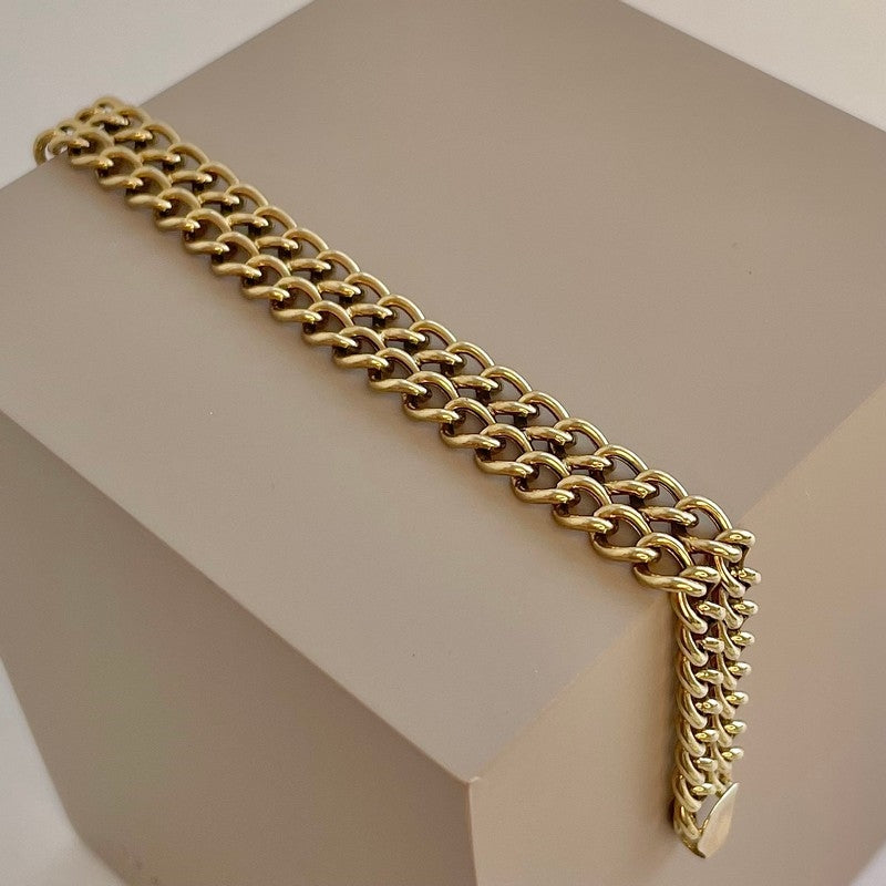 Armbåndet fås i én variant – klassisk og alsidig, så det kan bruges af enhver, der ønsker et elegant udtryk. Armbåndet er unikt i sit udtryk, og den dobbelte kæde gør det til et spændende valg, både til dig selv eller som gave.