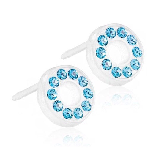 Blomdahl øreringe i medicinsk plastik med blå zirkonia, 8 mm
