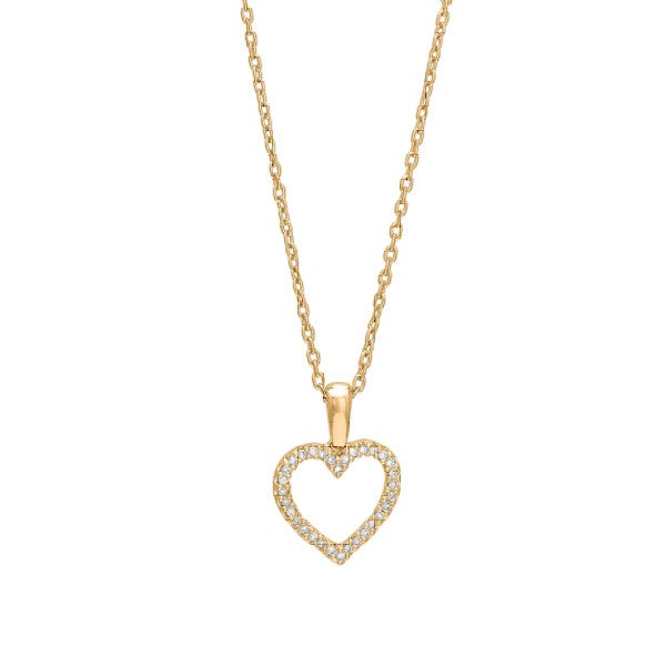 Siersbøl hjertevedhæng i 14 kt guld med 0,09 ct diamanter og forgyldt sølvkæde 42+3 cm
