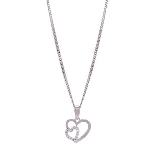 Siersbøl vedhæng i rhodineret sølv med dobbelt hjerte og zirkonia inkl. kæde 42+3 cm