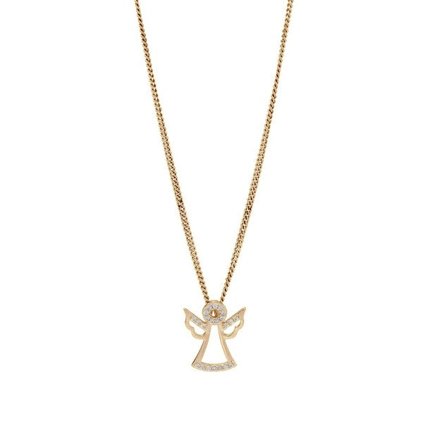 Siersbøl vedhæng med engel i forgyldt sølv og zirkonia inkl. kæde