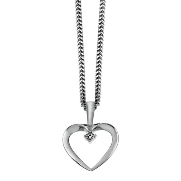 Siersbøl hjertevedhæng i 14 kt hvidguld med 0,025 ct diamant