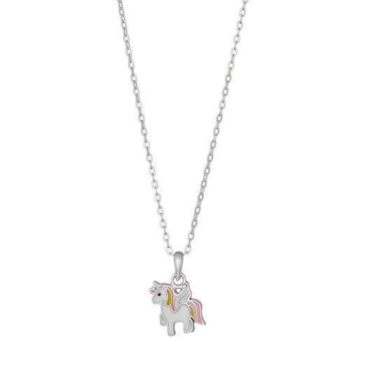 Nordahl Andersen børnehalskæde i rhodineret sølv med enhjørning og emalje