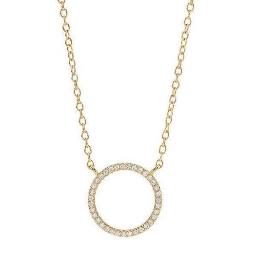 Halskæden fås i denne elegante variant med zirkoncirkel i forgyldt sølv. Ønsker du et samlet og stilfuldt udtryk, kan du kombinere den med de matchende ANNANOR smykker fra JoanliNor.
