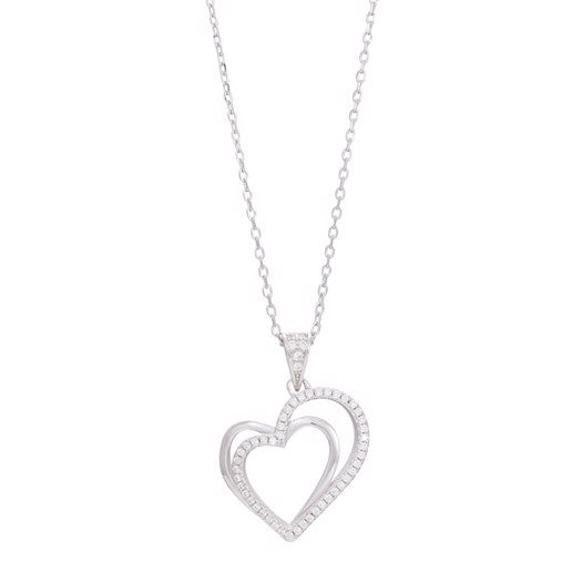 Siersbøl hjertevedhæng i rhodineret sølv med zirkonia og kæde 42+3 cm