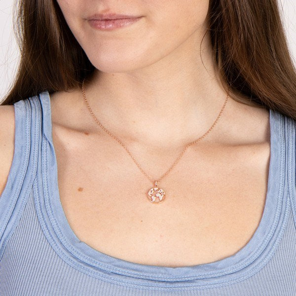 JoanliNor EttaNor halskæde i forgyldt sølv med zirkonia og world vedhæng 15 mm 42+3 cm