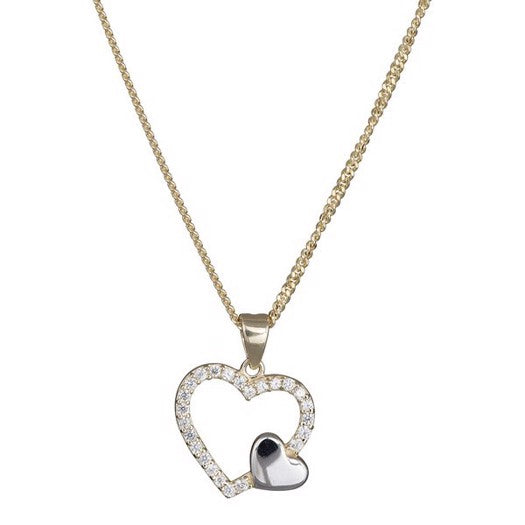 Siersbøl hjertevedhæng i 8 kt guld med zirkonia og forgyldt sølvkæde 42+3 cm