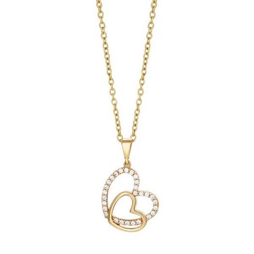 Siersbøl dobbelt hjertevedhæng i 8 kt guld med zirkonia