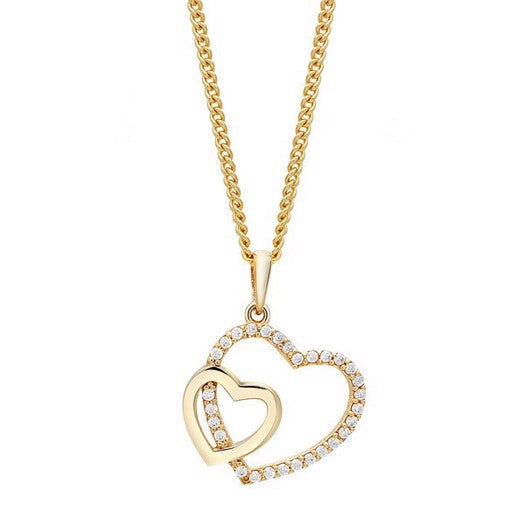Siersbøl forgyldt sølvvedhæng med to hjerter og zirkonia 42+3 cm