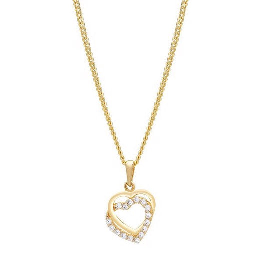 Siersbøl vedhæng i 8 kt guld med flettede hjerter og zirkoner