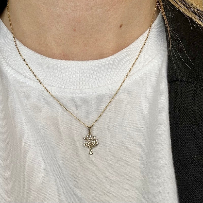 Vedhænget er udført i 8 karat guld og prydet med funklende zirkonia, der giver det et raffineret og luksuriøst look. Motivet af livets træ symboliserer styrke, vækst og livsglæde, hvilket gør smykket til en meningsfuld gave – enten til dig selv eller en, du holder af. Den forgyldte kæde fremhæver guldet og zirkoniaens klare glans på smukkeste vis, og halskæden kan bæres alene for et stilfuldt statement eller kombineres med andre smykker for et moderne lag-på-lag look. Passer både til hverdag, på arbejdet og til festlige anledninger, hvor du ønsker at tilføje et strejf af luksus og personlighed.
